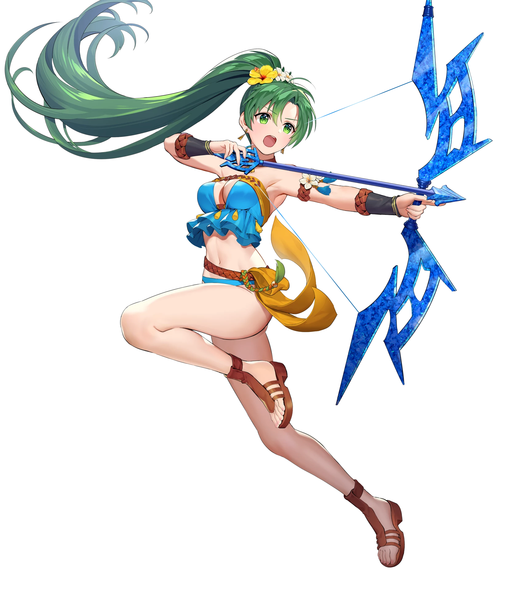 大海……真的很辽阔呢。这一望无际的景色,让我想起了塞迦的大草原……虽然我曾在草原上的湖泊洗过澡……但还是第一次像这样游泳呢。刚、刚开始还觉得穿着这种 好像风一吹就会飞走的薄布站在[艾克拉]面前很丢人……但终于渐渐开始习惯了呢。是多亏了南国的开放感吗……不过,夏天现在才刚要开始吧?我们来比比看谁能先游到对面那座岛。要是你放水……我可是不会原谅你的喔!